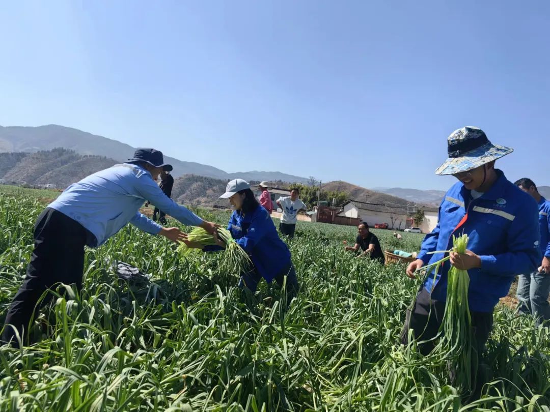 農(nóng)田里,經(jīng)驗(yàn)豐富的莊稼老把式正在細(xì)致地給團(tuán)員青年們講解蒜苗采摘方式。團(tuán)員青年們認(rèn)真領(lǐng)會(huì)采摘要領(lǐng),依次排開,相互配合著采摘、運(yùn)送、裝箱,積極展現(xiàn)青年的認(rèn)真努力和青春活力。