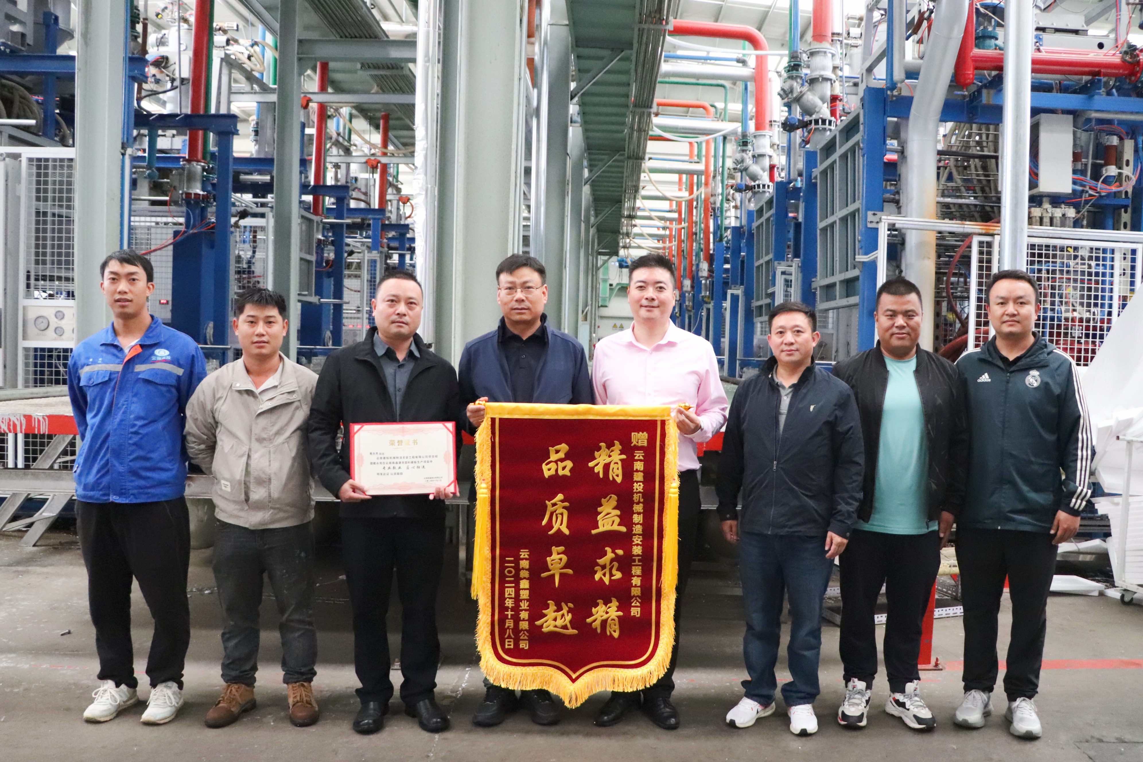 9月26日,云南犇鑫塑業(yè)有限公司向公司授予“精益求精 品質(zhì)卓越”錦旗,致謝公司在云南犇鑫建筑塑料模板生產(chǎn)項目中展現(xiàn)的專業(yè)服務(wù)與硬核實力。云南犇鑫塑業(yè)有限公司總經(jīng)理李彥雄,公司總經(jīng)濟師、商務(wù)總監(jiān)、商務(wù)中心經(jīng)理阮忠志出席儀式。